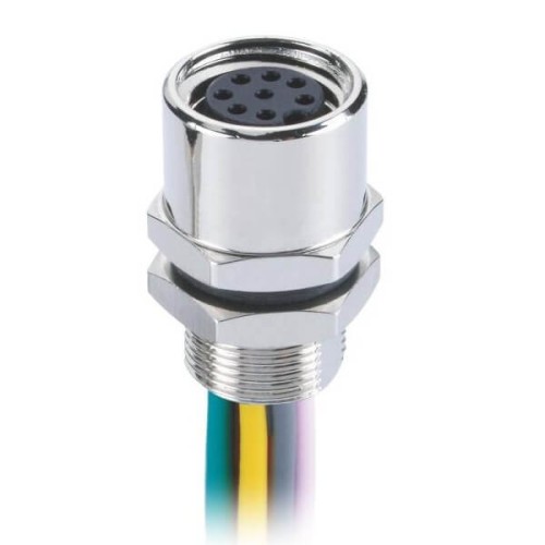 - M8, A Code, 8Pin, Panel Receptacles, Female, Straight, For Cable, Solder Type, Back Mount,Non-Shield,Waterproof,26AWG,1M